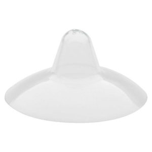 What is a nipple shield? A nipple shield is is a thin and small silicone device that goes over the nipple and areola when breastfeeding. It looks kind of like a hat. There are two types of nipple shields contact (photo on left) and regular (photo on right).